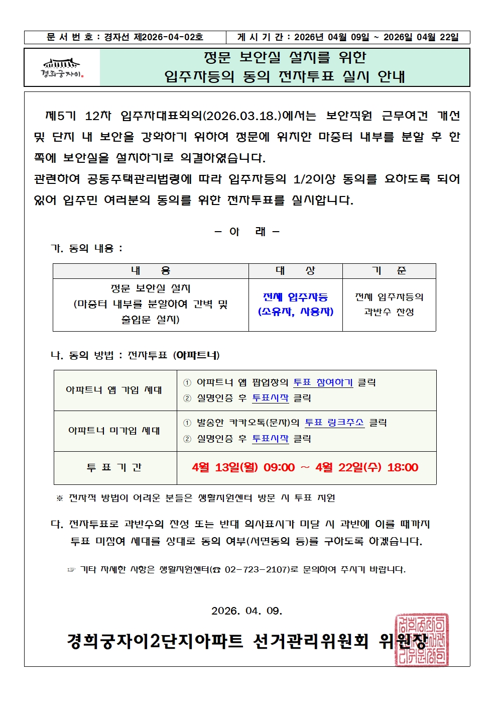 입주민간 자유로운 소통 공간!